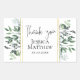 Folhas de eucalipto pintadas à mão, lindas folhas rústicas e douradas, e folhagem botânica em tons de sábio, verde e azul empoeirado. Personalize seu próprio obrigado elegante, seus adesivos de casamento com os nomes da noiva e do noivo e a data do casamento. Veja nossa coleção para designs mais bonitas neste tema de casamento. Vinhetas De Casamento Eucalyptus De Folha De Ouro.