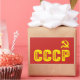 O CCCP (tradução russa para a URSS) e o martelo e foice feitos em estilo retrô e vintage para o partido comunista. Este design é impressão nos adesivos.