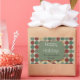 Vinheta de Natal Big Retro Dots com grandes bolinhas retrorativas de morango, verde e bronzeado e faixa verde que lê Feliz Feriados que você pode personalizar com seu nome de família! Este adesivo festivo de férias combina perfeitamente com os cartões com fotos de feriado, postagem e etiquetas de endereço de retorno com o nosso design de Grandes Portas Retro.