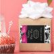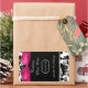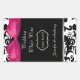 Bonito garrafa de vinho de casamento favorece adesivos feitos em uma cor damasco preta e branca, no topo e no fundo, e um preto sólido, no meio. Um arco de cetim cor-de-rosa-chic acentua a parte superior do adesivo. Personalize o texto branco da sua recepção de casamento.