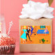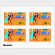 Estes adesivos do Coquetel Retro Cartoon não têm um osso introvertido nos seus corpos! O design moderno de meio século apresenta um desenho animado de uma sala de estar e um coquetel animado. Há um casal atraente no chão de dança. A loira de um vestido de turquesa e sua escolta alta, escura e bonito estão dançando o cha-cha. No chão, há um gravador verde rodeado de registros vinílicos. Contra a parede oposta, uma bela ruiva está sentada num sofá azul. Ela está vestindo um vestido rosa brilhante. Seu único acessório é o vidro martini em sua mão. Ao lado dela está uma lâmpada do chão menos a sombra. Onde está a sombra? Está na cabeça de um homem tonto de terno azul que é claramente a vida da festa. Ele também está segurando um copo de martini. Quem decorou a sala não tinha medo de cor. Tem uma parede de tijolos laranja e um piso laranja. Na parede atrás do sofá, há uma pintura teal e turquesa de um globo com uma estrutura preta. Eles fazem selas de envelope divertidas para seus convites de festas!