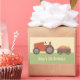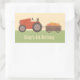 Este adesivo decorativo apresenta um trator vermelho puxando ao longo de uma carroça de abóboras de várias formas e tamanhos cuidadosamente protegidos por feno. Paleta colorida de laranja, marrom, amarelo, vermelho e verde perfeita para aniversários no outono e outono! Personalize com a mensagem do seu partido para fazer disto uma peça decorativa para favoritos para festas.