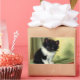Stickers featuring a darling tuxedo kitten! This black and white kitten cutely poses on green and red blankets. A wonderful gift for cat lovers and Victorian art enthusiasts!