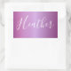 Adesivo Retangular Violeta Roxa e Script Branco Personalizado