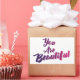 O que é uma frase verdadeira? Você é linda! Você sabe que está certo? Uma fonte legal de letras feitas com um gradiente colorido.