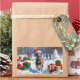 Adesivo Retangular Weimaraner correndo em neve com chapéu de Natal
