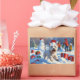 Adesivo Retangular Westie correndo em neve com chapéu de Natal