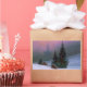 Vinhetas com a pintura petrolífera de Caspar David Friedrich (1811). Neve e pinheiros enchem a paisagem. Um jovem rezou sobre uma rocha para a Santa Cruz. Uma igreja aparece no nevoeiro. Um maravilhoso presente de Natal!
