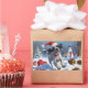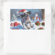 Adesivo Retangular Wirehaired Pointing Griffon em Chapéu de Natal em