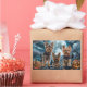 Libere o espírito assustador com esta design sombria do Dia das Bruxas apresentando um bando de cachorros sob um céu escuro e iluminado, cercado por morcegos voadores e abóboras brilhantes. Perfeito para aqueles que amam um toque de diversão terrível com seus amigos peludos!