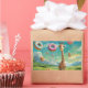 Girafa na terra do leite e mel com rosquinhas caindo do céu