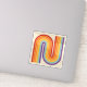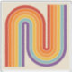 This artwork channels a retro graphic spirit, forming the letter‑like curve with parallel bands of red, orange, yellow, light blue, teal, and purple. The layered arcs flow in harmony, evoking the bold optimism of 1970s design. Set against a soft beige background, the vibrant rainbow palette stands out with clarity and rhythm. The composition balances simplicity and dynamism, creating a timeless visual that feels both nostalgic and modern.