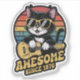 Decorate everything with purr-fect awesomeness! This durable sticker features the retro 1976 cat and ukulele design. Ideal for decorating laptops, notebooks, water bottles, or guitars. A small, meow-tastic gift for celebrating 50 years and a love for music and cats.