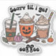 Um adesivo divertido do Dia das Bruxas com bebidas de café assustadoras e latas de especiarias de abóbora com morcegos. Perfeito para decorar laptop, garrafas de água, cadernos ou favoritos para festas para café e amantes do Halloween.