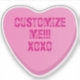 Put your own spin on a retro classic with these personalized pink candy heart stickers! Whether you want to add names, fun phrases for your valentine, galentine, bestie, sweet heart, or inside jokes, this design allows you to create custom text stickers with a trendy Y2K aesthetic. Printed on durable, high-performance vinyl, these stickers are perfect for personalizing your laptop, water bottle, phone case, or even your car with a pop of pink. Available in five sizes from tiny to huge! Use the design tool to add any text or phrases to the hearts—perfect for party favors, branding, or gift sealing. Premium Vinyl Quality: Choose from matte white, glossy white, or a transparent finish for a "stamped" look.
