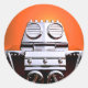 Robot de brinquedo vintage recortado 3d renderizado com fundo vermelho forte e retroiluminado.