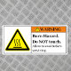 Para evitar queimaduras e lesões, a máquina deve ser claramente marcada com avisos sobre a temperatura superficial ou áreas de alta tensão. As etiquetas de perigo de aviso/gravação ajudam os usuários finais a reduzir o risco de interagir com os riscos de queimadura relacionados a máquinas.