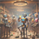 Futuristic robots enjoying a lively night at a neon-lit bar, sharing drinks, laughter, and music. A perfect blend of technology and fun, creating a unique cyberpunk party atmosphere.