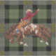 Cowboy com este rodeio temido pelo caçador de bronco num fundo de xadrez verde. Excelente para favoritos para festas, presentes e aniversários.