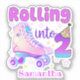 Celebre seu segundo aniversário em estilo com este adorável design "Rolling In 2" com skates roxos giros de rolo! Perfeito para uma festa de aniversário de patins.