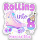 Este design púrpura e giro apresenta a frase "Rolando para 8". É perfeito para a comemoração de aniversário de um skater roller.