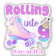 Esta design púrpura e fofa apresenta a frase "Rolando para 9". É perfeito para a comemoração de aniversário de um skater roller.