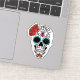 Vestido e festiva vareta do crânio de açúcar apresentando um crânio tradicional de açúcar com Rosas vermelhas na cabeça Desenhada para pessoas, jovens e velhas que no dia 2 de novembro celebram Día de los Muertos, um dia para se lembrar de nossos amigos e familiares que partiram antes de nós.
