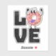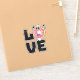 Ilustração retrógrada com design de teste de "Amor" branco e decoração colorida de mascote de rosquinha bonitinho