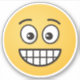 Um rosto com olhos abertos e uma boca grande aberta (rindo), mostrando dentes.