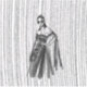 Esta é uma ilustração na moda a preto-e-branco que apresenta uma mulher envenenada num vestido dramático, fora do ombro, com embelezamentos florais intrincados e uma capa brilhante e fluente. O fundo tem uma textura vertical impressionante, acrescentando uma sensação de profundidade e movimento