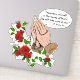 Este belo adesivo apresenta uma imagem católica tradicional de mãos rezando segurando o rosário com rosas vermelhas e uma citação de Rua. Padre Pio. Todo texto e fontes podem ser modificados.