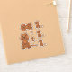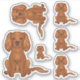A ilustração original do desenho de Destei de um cão da raça Cavalier King Charles Spaniel, de cor rubi, que está sentado. O design é colocado seis vezes na folha em diferentes tamanhos.