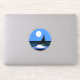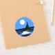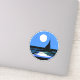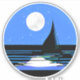 Pau numa silhueta preta de um veleiro contra um céu noturno com lua e estrelas, refletido na água