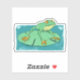 Uma bela ilustração do estilo de desenho animado de um pequeno sapo verde parado em uma almofada de lírio em uma lagoa. Alguém que ama sapos