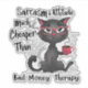 A funny, sarcastic black-and-white graphic design features a black cat wearing red glasses and holding a steaming red coffee mug. The cat is smiling, and bold black text reads: "Sarcasm & attitude much cheaper than bail money therapy." This design is available on a variety of products, making it a perfect gift for cat lovers.