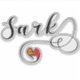 Etiqueta personalizada de corte de design de letra com script. Bandeira de sark no coração. Sark faz parte das Ilhas Anglo-Noroeste do Canal da Mancha, ao largo da costa da Normandia, França.