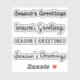 Esta folha contém um conjunto de quatro autocolantes de férias personalizados em uma variedade de fontes de saudações personalizadas de beijo, atualmente "Saudações da Época", que você pode mudar para sua própria saudação na página do produto!