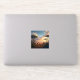 Adesivo de vinil quadrado Savannah Dawn com arte ousada e detalhada, com profundidade de cor rica. Impresso em vinil branco brilhante durável para reprodução vibrante e adesão duradoura. Ideal para laptops, garrafas de água, tablets, cadernos e outras superfícies lisas. Um adesivo limpo e moderno projetado para se destacar onde quer que seja colocado.