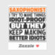 Engraçado Saxofonista Diz "Saxofonista Eu Tento Fazer Coisas Idiotas Provas Mas Eles Mantêm Fazer Melhor Idiotas". Agarre esta design saxofonista engraçada como presentes engraçados para uma mãe, pai ou amigo espetacular.