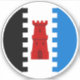 "Per pale sable and azure, em um assalto pálido, uma torre gula."