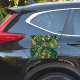 Seamless pattern of gold, jewelry, shiny fern branches and leaves on green, woodland, textured background. Golden fern.