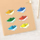 Adicione seis nomes diferentes ou seis com o mesmo nome a estes autocolantes cortados do barco a pedal. Cada adesivo apresenta uma ilustração de um barco pedal de cor brilhante com um nome abaixo numa cor de coordenação.
