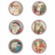 6 Imagens bonitas de Pinturas Vintage Santa Claus. Estes são adesivos grandes, mas você pode encomendá-los em tamanhos menores, se quiser. Cada adesivo de Papais noeis clássico tem um quadro vermelho redondo.
