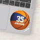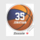 Este adesivo de basquetebol para rapazes apresenta um gráfico simples de basquete com cores azuis e laranja em dois dos painéis do basquete e nome de jogador facilmente personalizável e um grande número de camisa em estilo varsity - por katz_d_zynes | veja mais presentes de basquete dos meus rapazes >> https://www.zazzle.com/store/katz_d_zynes/products?cg=196104119510682225 | Presentes de basquetebol feminino >> https://www.zazzle.com/store/katz_d_zynes/products?cg=196944751013436436