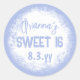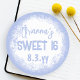 Personalize seu próprio adesivo de festa azul claro para a festa de aniversário de 16 anos! O desbotamento branco é atraente com suas fontes azuis. Use essa etiqueta de aniversário azul e branca personalizada para envelopes ou sacolas de presente sweet sixteen! Perfeito para temas de cores azul claro, azul céu, azul bebê.