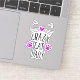 Uma senhora de gato maluca em maiúsculas sans com letra escrita à mão, com duas estampas de pata rosa neon e um rosa que serve como nariz de gato com bigodes pretos e dois ouvidos de triângulo.