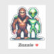 Pixel Art de 8 bits, sasquatch patudo e alienígena extraterrestre sendo amigos numa resolução de vibração para jogos.