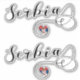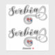 Etiqueta personalizada de corte de design de letra com script (2 na folha). Bandeira da Sérvia no coração.