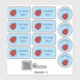 Niedliche wasserfeste Schulaufkleber für Kinder. Set mit 12 verschiedenen eckigen und runden Namensaufklebern, Motiv Marienkäfer - hellblau.