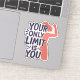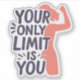 Um adesivo motivacional para estudantes e mulheres empresárias. Texto roxo e a citação: Seu único limite é você. Um gráfico de uma mulher forte.